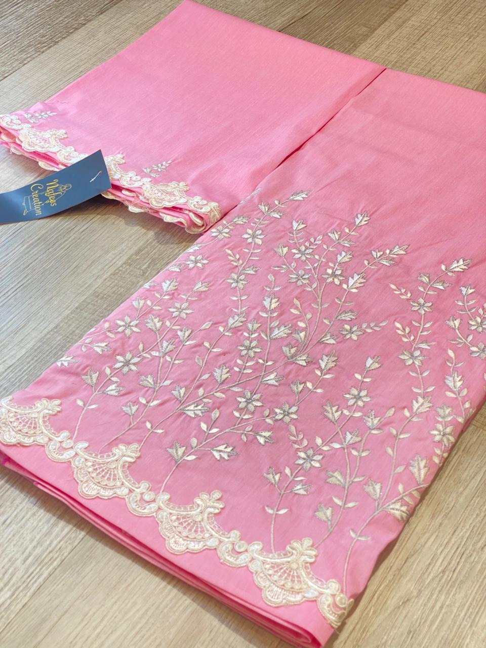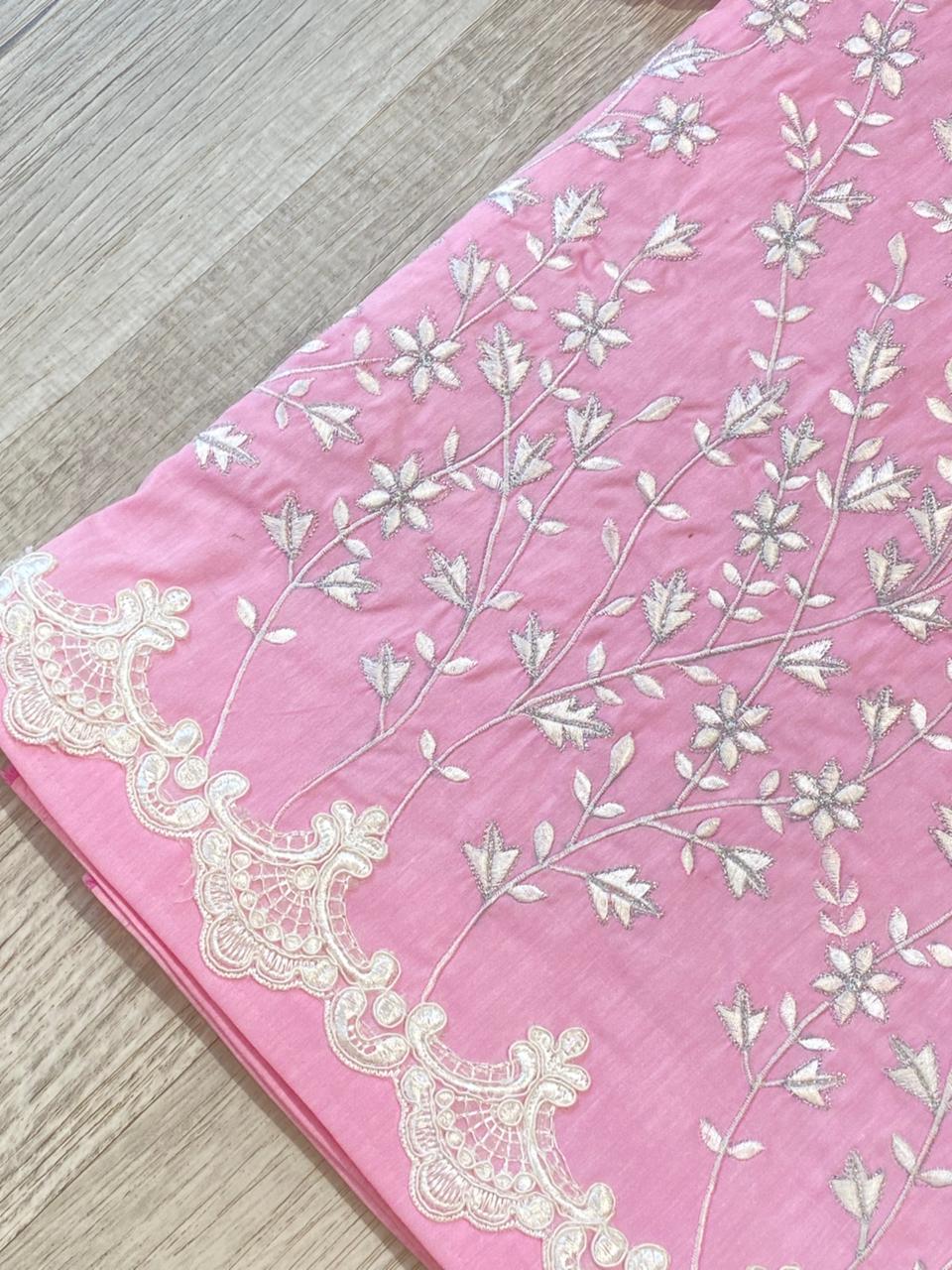Easy iron cotton fabric with machine embroidery all around