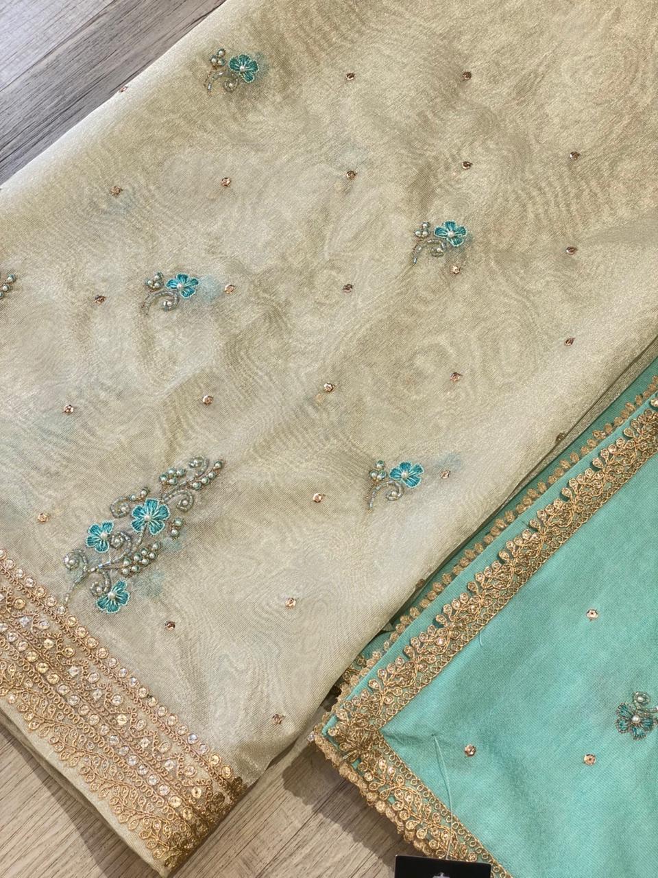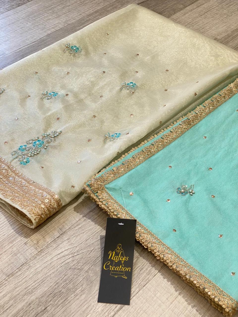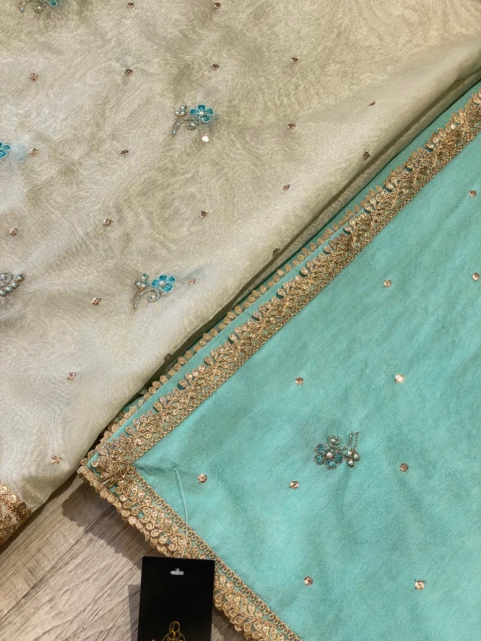 Self shine fabric Masori fabric with handwork embroidery contrasting turquoise dupatta
