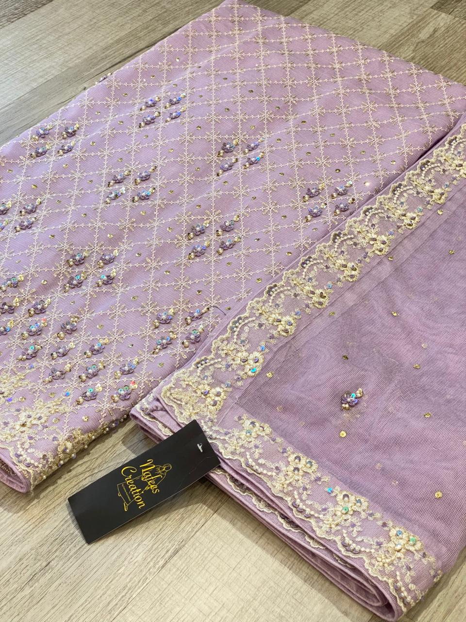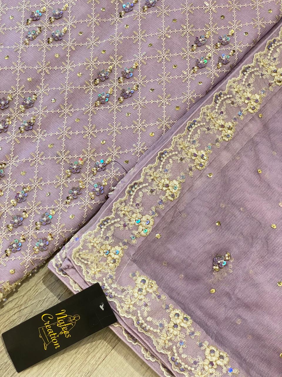 Cotton embroidered khaadi net with handwork on it and Cotton net duppatta