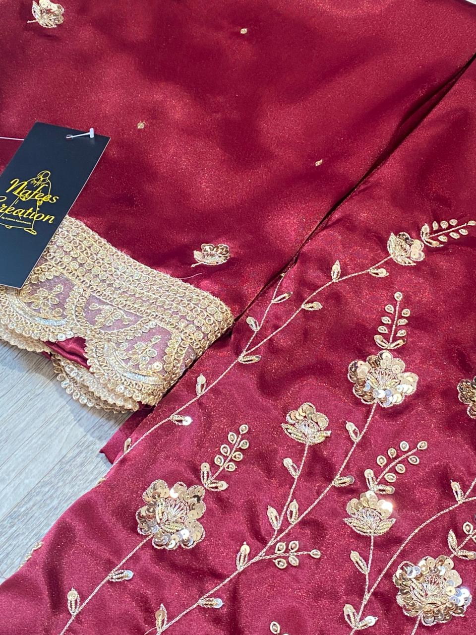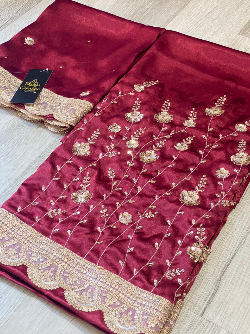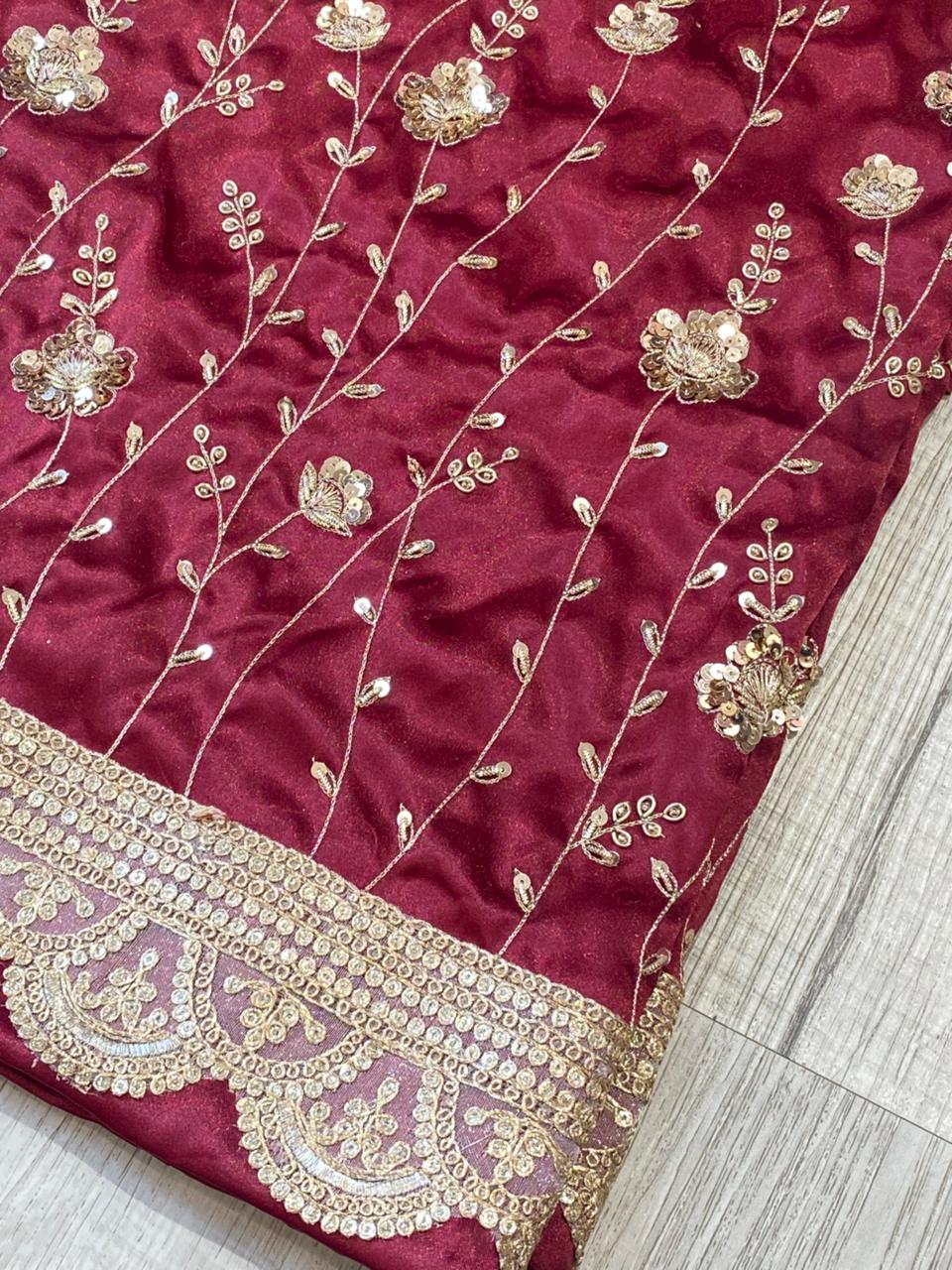 Korean silk fabric with hand work all around