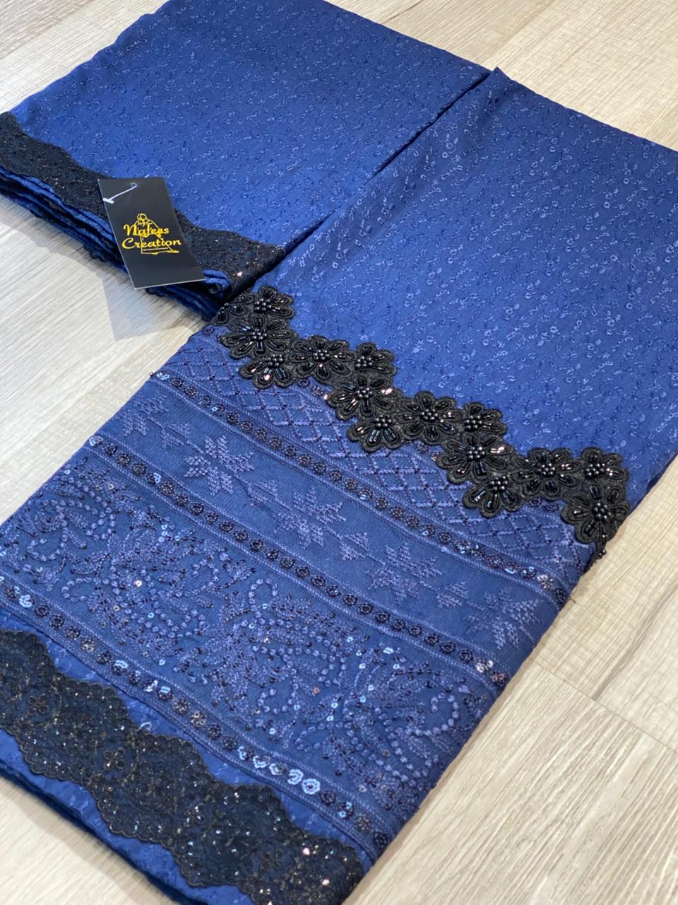 Chicken fabric with embroidered panel and sequins
