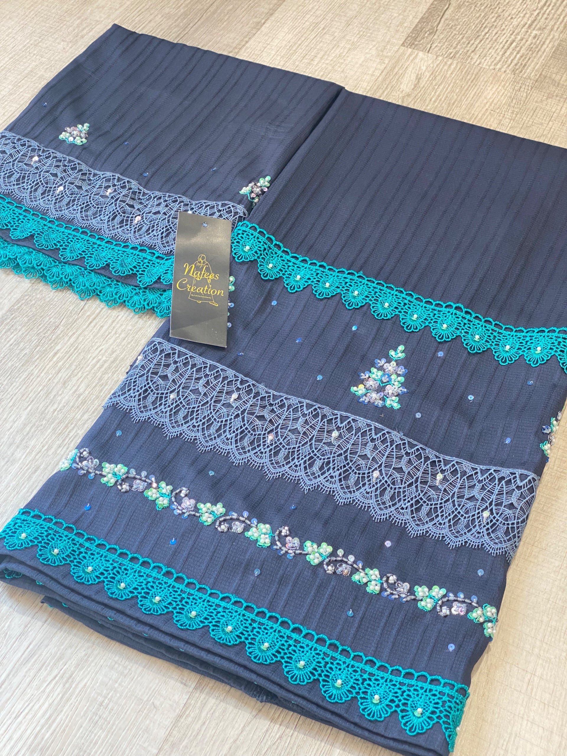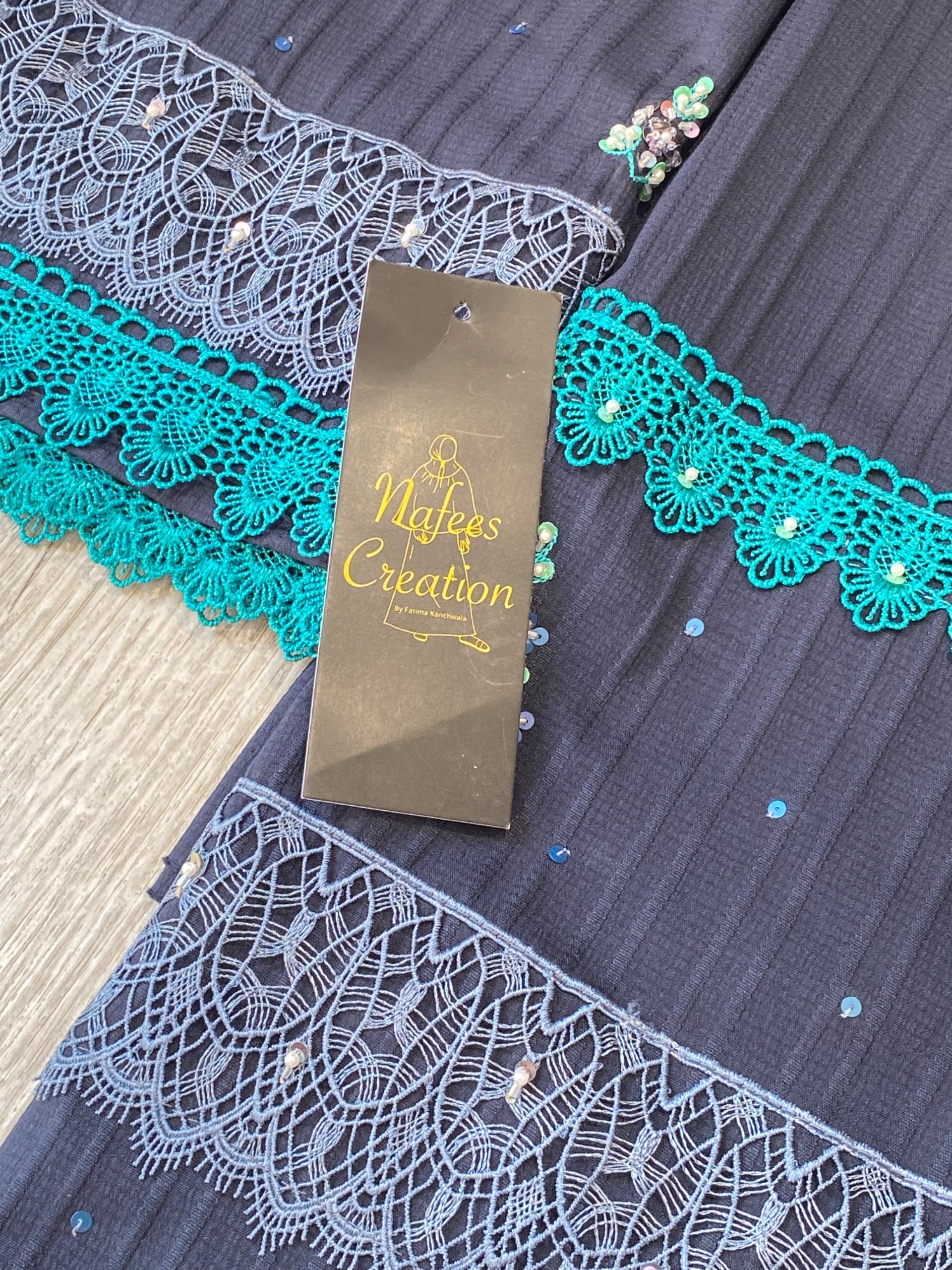 Premium quality stripped abaya fabric with lacing and hand work