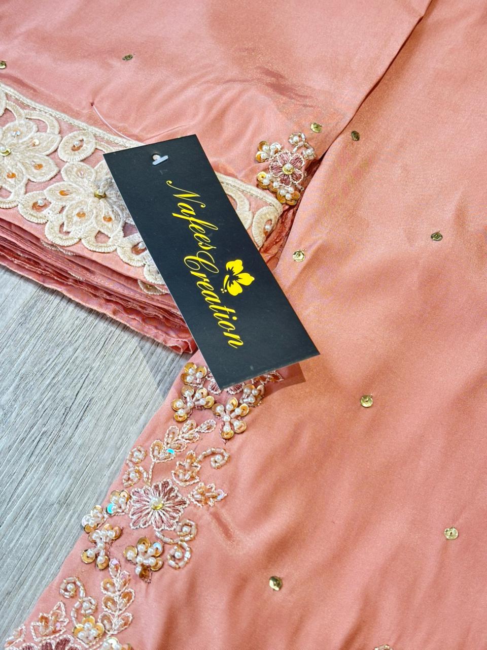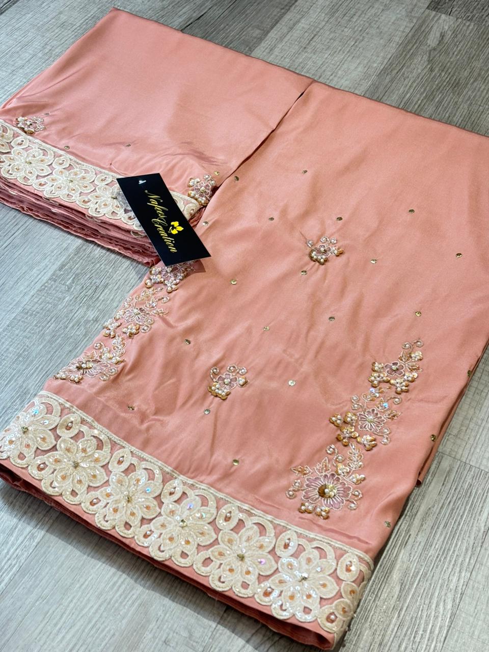 Silk fabric with hand embroidery