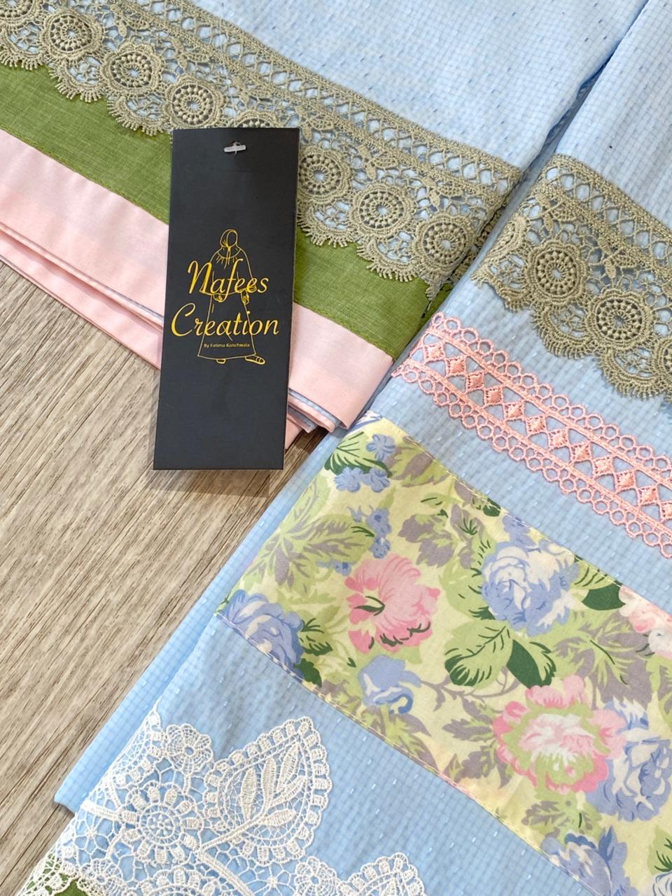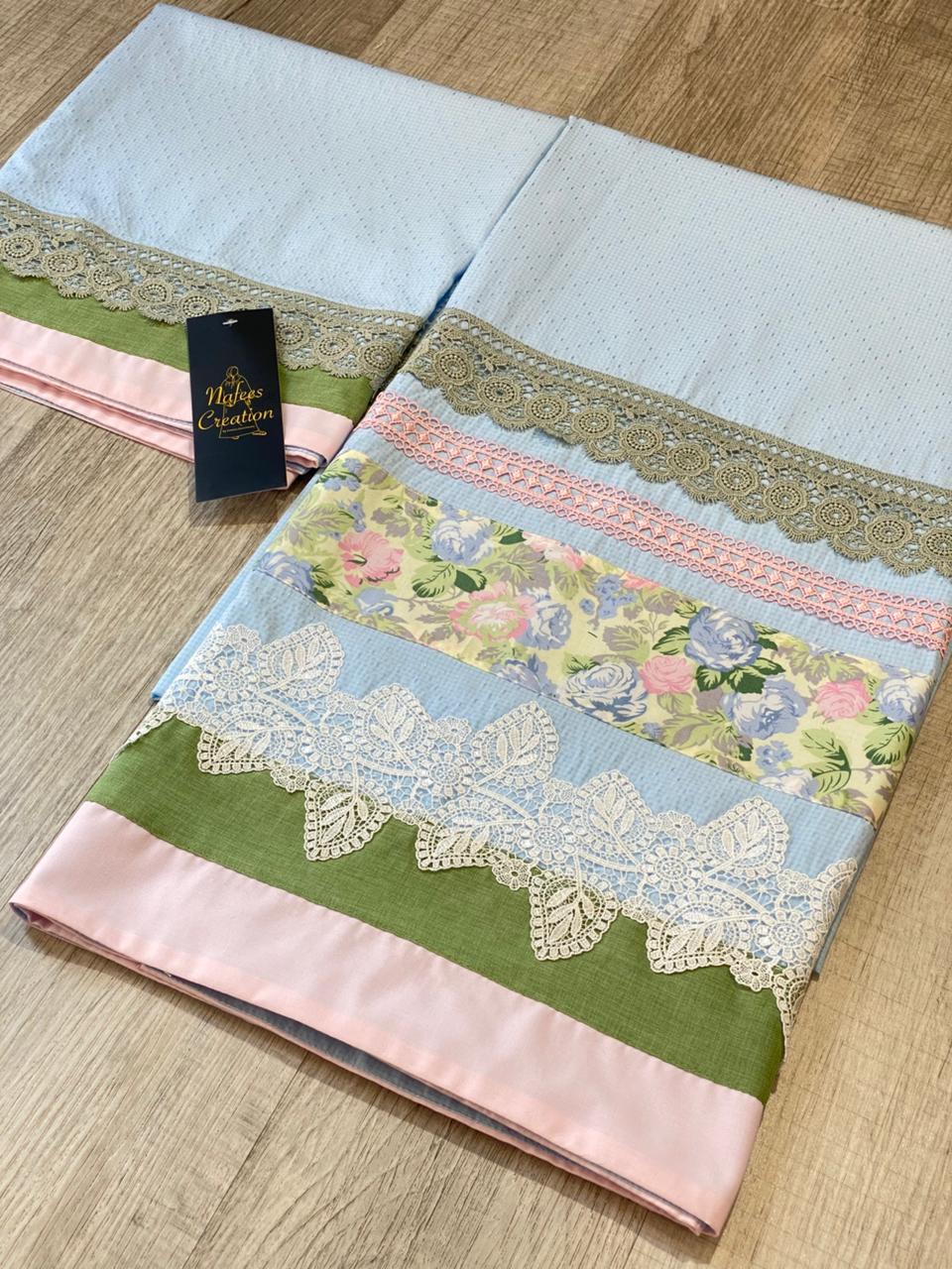 Easy iron self design fabric with fancy lacing and panelling
