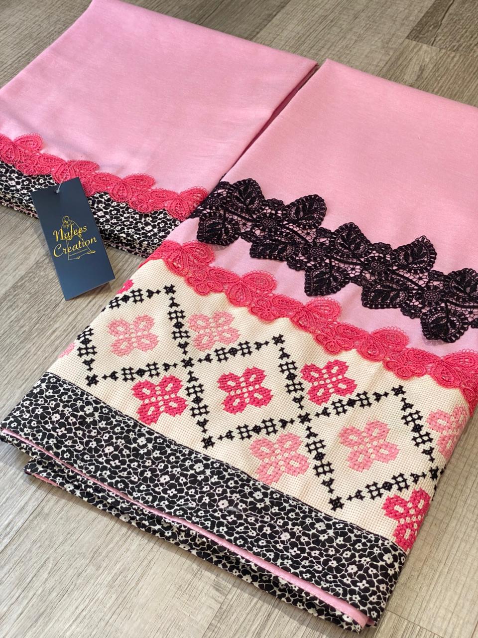 Easy iron cotton fabric with cross stitch
