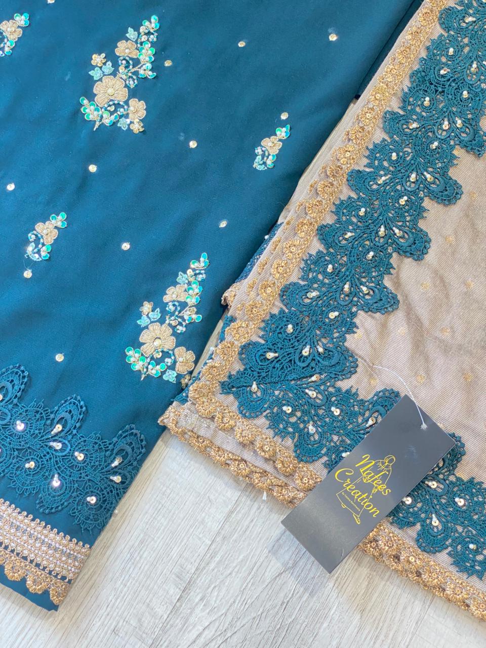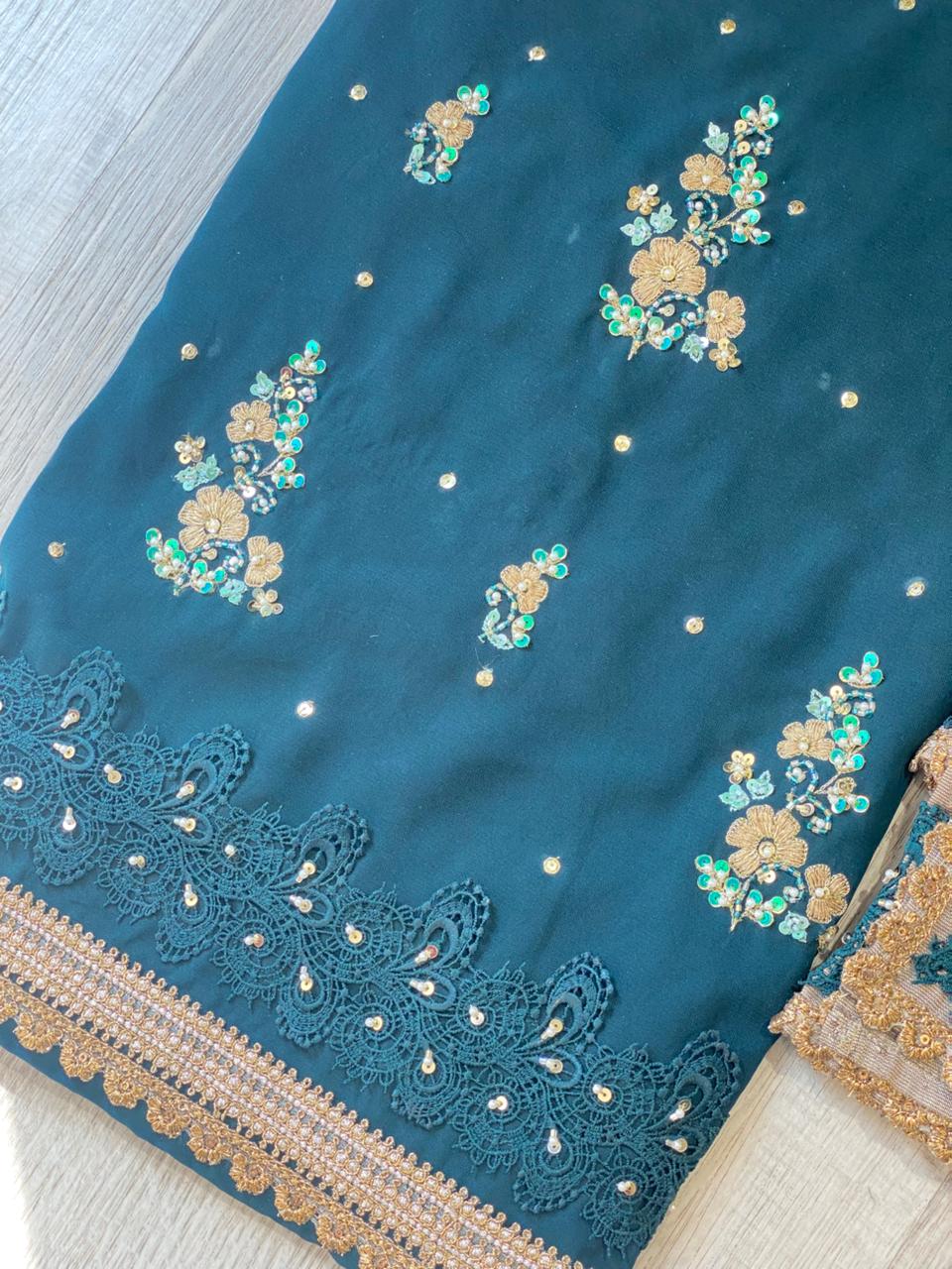 Abaya fabric with handwork embroidery contrasting golden dupatta