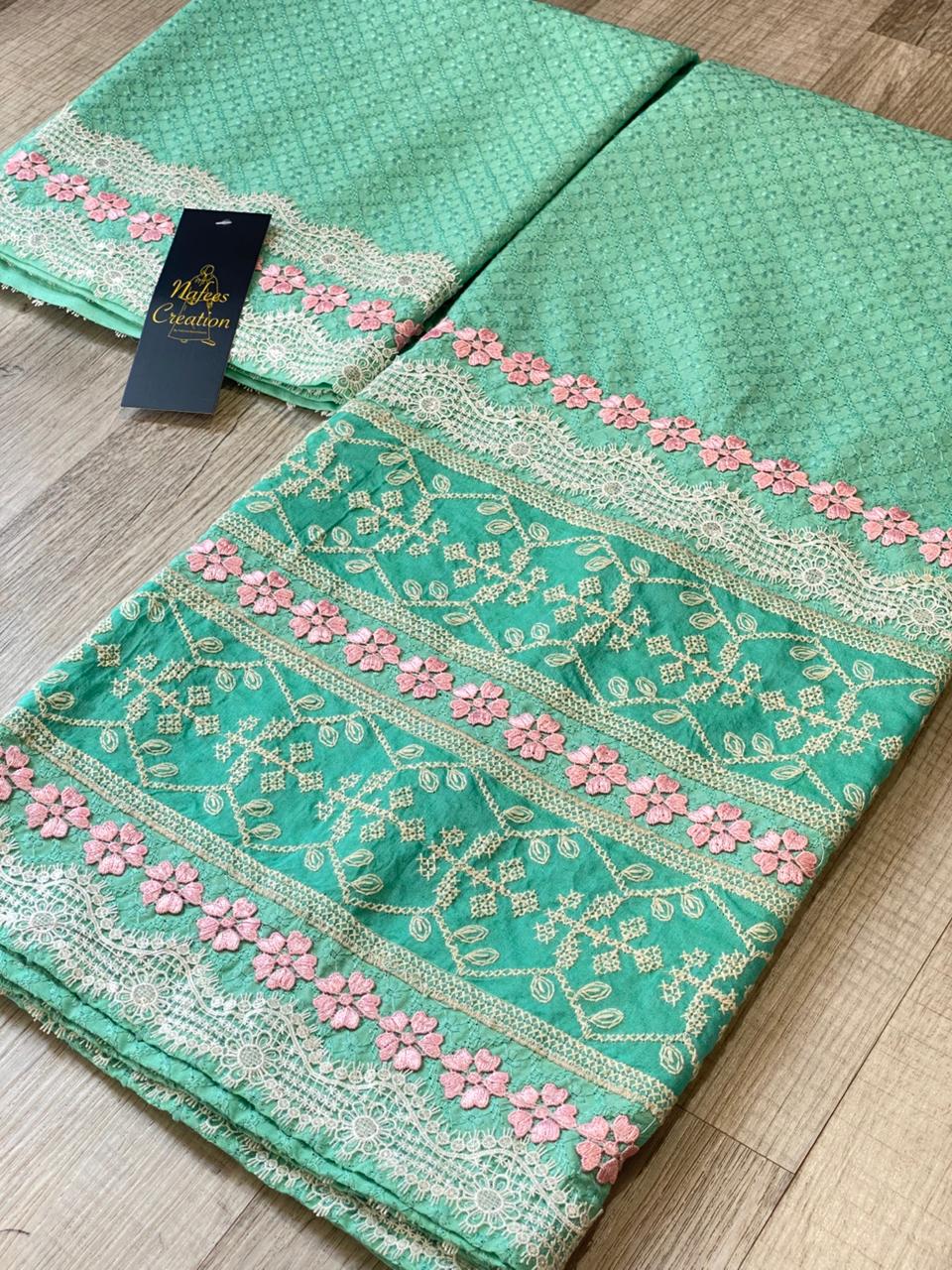Polo cotton fabric with hand work all around