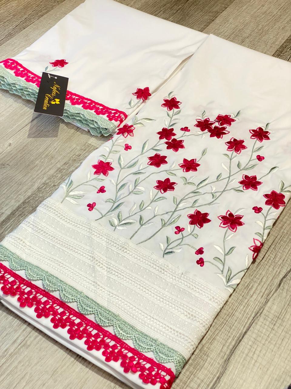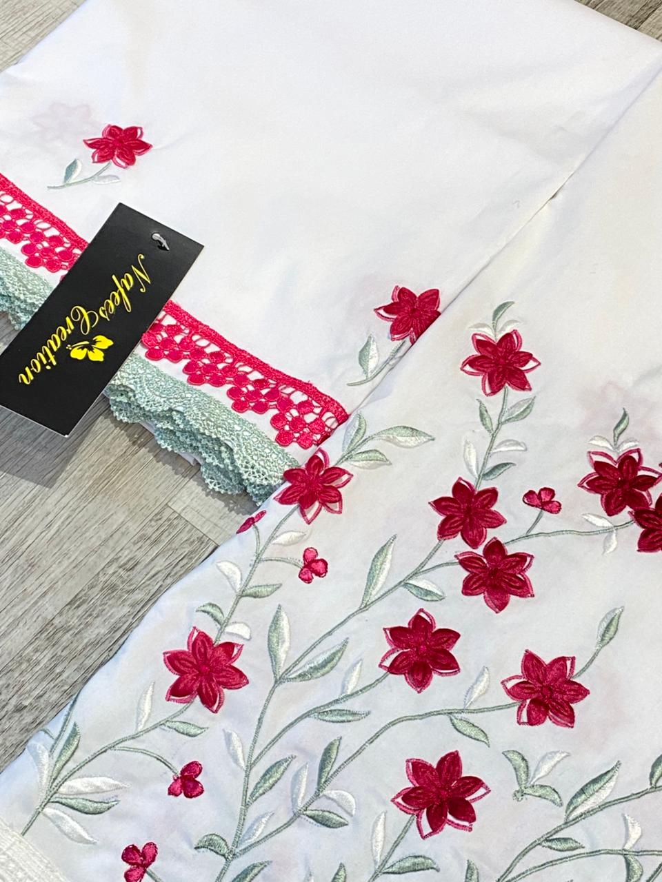 Easy iron cotton fabric with machine embroidery all around