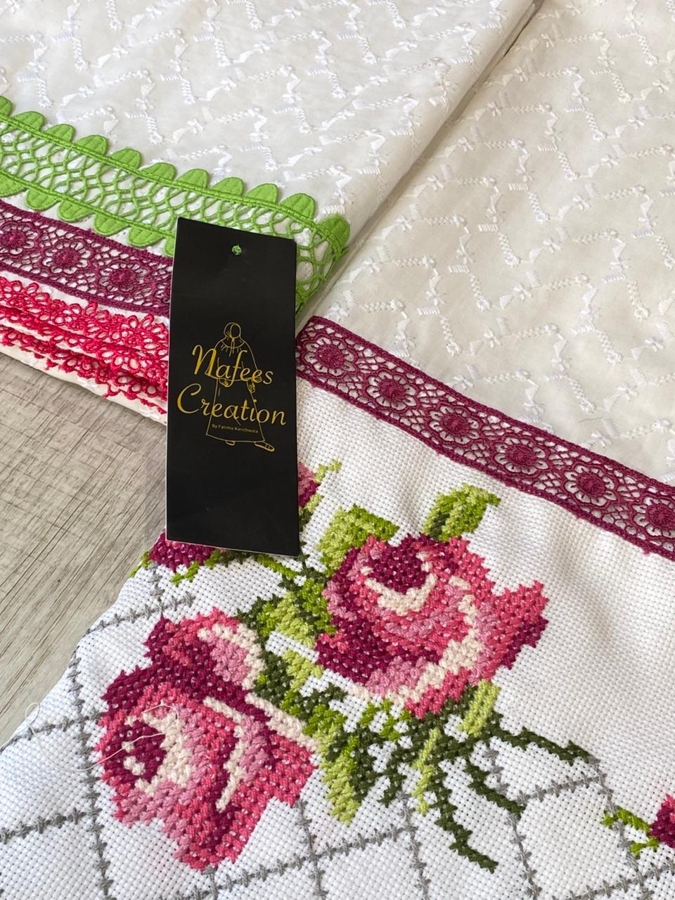 Chicken fabric with cross stitch pattern